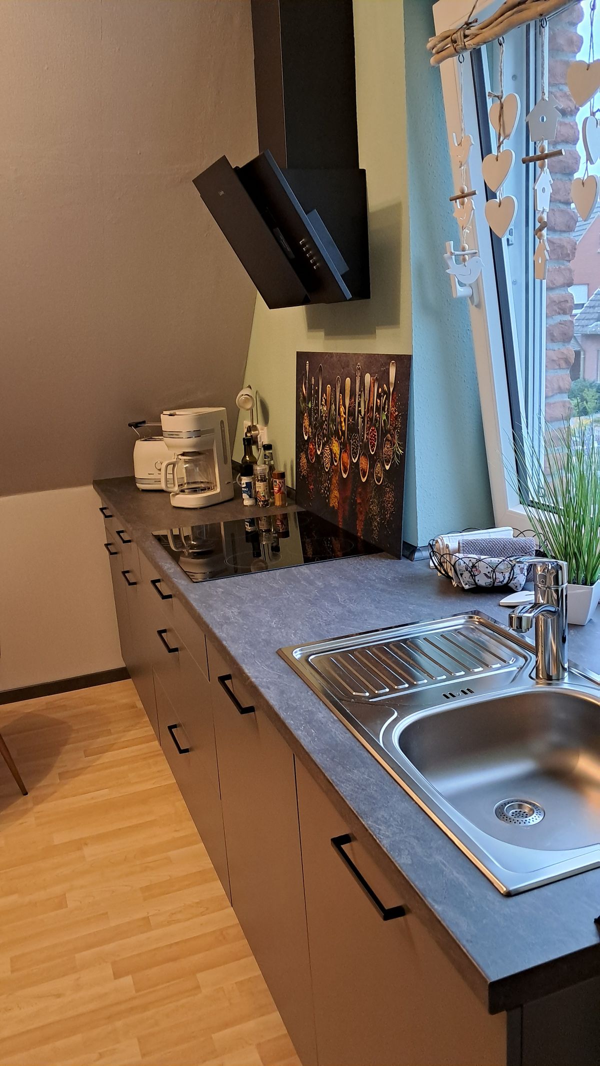 Im idyllischen Ortsteil Müschen von Bad Laer, am Rande des Teutoburger Waldes, erwartet Sie die im April 2025 fertiggestellte, liebevoll eingerichtete, 52 qm große Ferienwohnung „Landquartier“. Die Wohnung befindet sich im ersten Obergeschoss und ist über einen separaten Eingang erreichbar. Die offene Wohnküche ist vollständig ausgestattet (Backofen, Spülmaschine, Wasserkocher, Mikrowelle, Eierkocher, Toaster und Kaffeemaschine), sodass es Ihnen an nichts fehlen wird. Vom Wohnzimmer aus gelangen Sie auf den angrenzenden Balkon zur Ostseite. Im Schlafzimmer stehen zwei Einzelbetten (je 1,20 x 2,00 m), die auch zusammen geschoben werden können, sowie ein Schreibtisch zur Verfügung. Das kleine, neu gestaltete Badezimmer verfügt über eine Dusche. In allen Zimmern sorgen Jalousien für eine angenehme Verdunkelung. Auf Anfrage können Fahrräder sicher in einer Garage untergestellt werden. Da Sie in einer ruhigen Sackgasse wohnen, lädt der Vorgarten dazu ein, die letzten Sonnenstrahlen des Tages zu genießen.