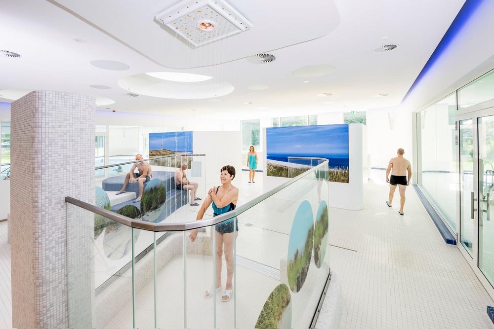 Sie können tief entspannen. - Soledusche: Die Dusche hat 7,2 Prozent Sole.